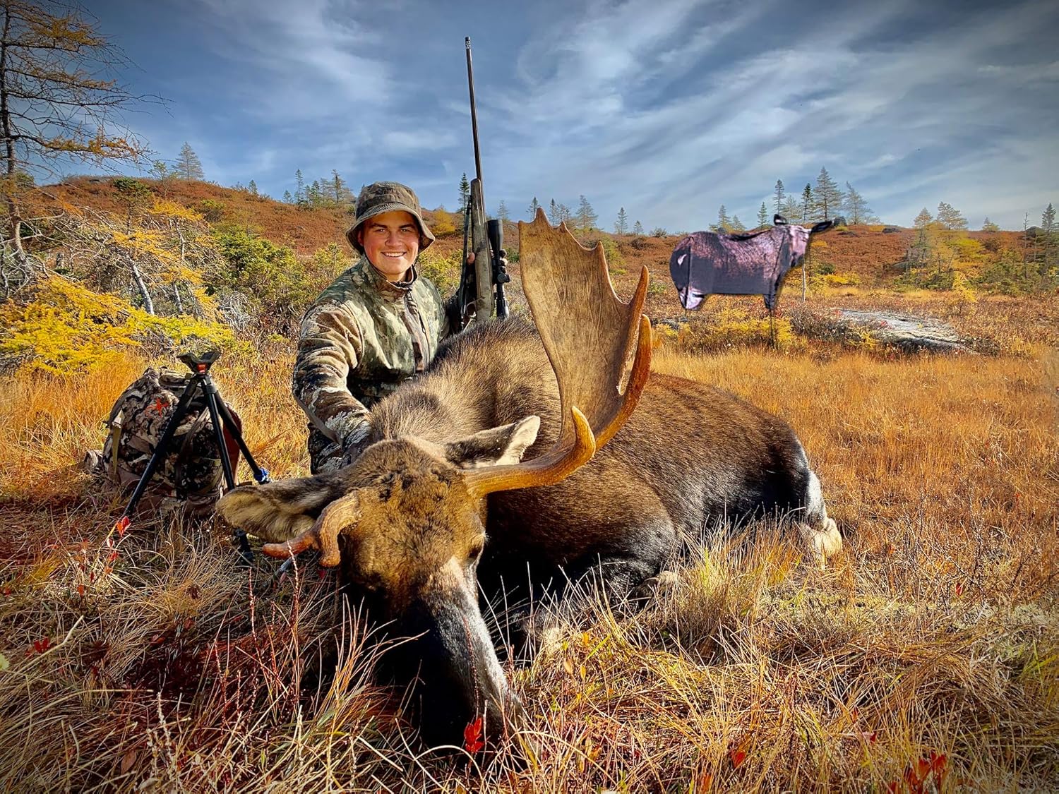Product Description The Moose II weighs a mere 48 oz with leg poles and stands 66-inches tall. Folding to a 20-inch circle means you can easily have the Moose II with you on any hunt. You may only have one chance to hunt moose in your life, give yourself an edge and pack the Moose II decoy. From the Manufacturer Montana Decoy's Moose II is the most realistic moose decoy ever produced. Easy to carry, fast to set up and super light weight makes this a must for any moose hunt.