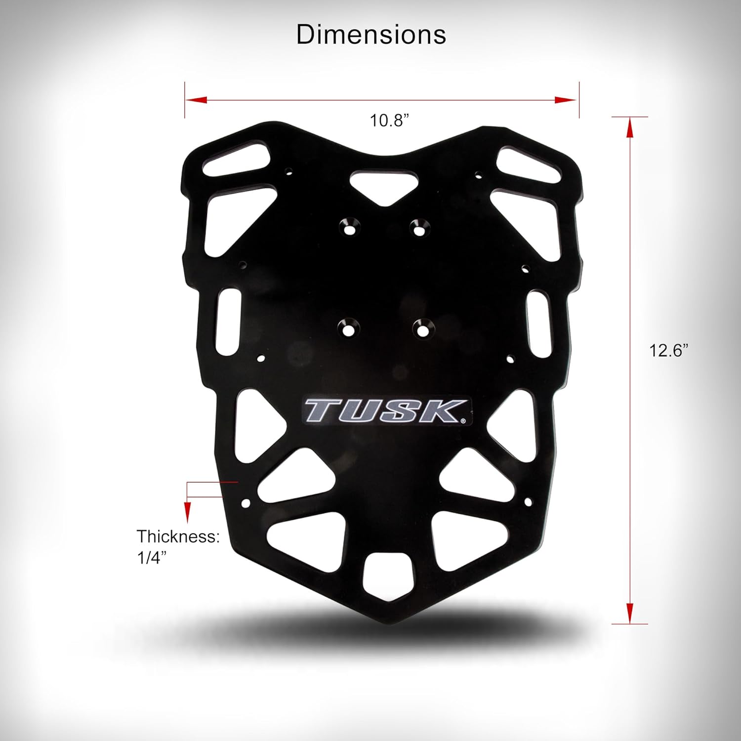The Tusk Top Rack is perfect for all your adventure motorcycling needs. If you have a Dual Sport Motorcycle and need to haul a little extra gear, but don’t require a Pannier Rack system, the Tusk Top Rack is what you are looking for. The Top Rack’s cargo plate is built from laser-cut, light-weight aluminum. Support brackets are also laser cut and made from either aluminum or steel, based on each application. The cargo plate and any support bracketry come powder-coated for durability and good looks. Tusk Top Racks feature multiple mounting points and strap slots, which allow for securing virtually any small load. When you are ready for adventure motorcycle riding, Tusk is ready to make it easier and more enjoyable