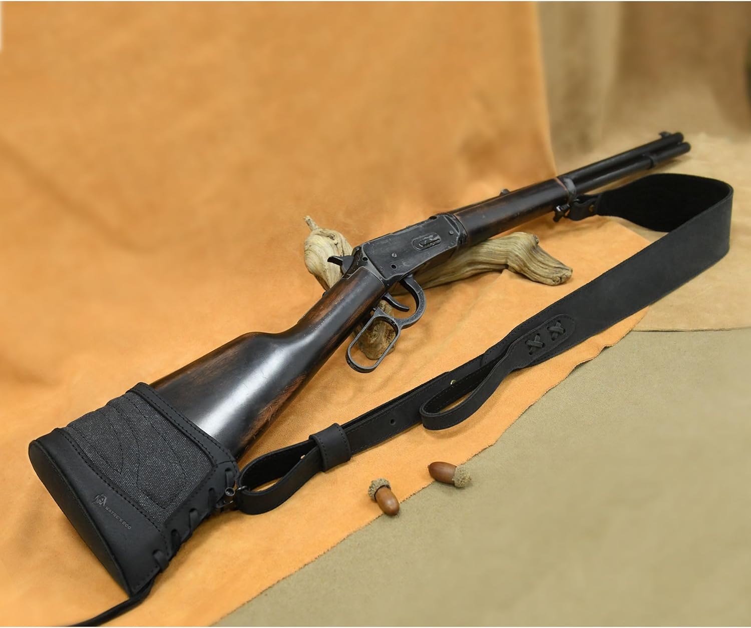 WAYNE'S DOG Slip On Recoil Pad with Sling, Canvas Leather Buttstock Extension Recoil Pad with Hunting Straps